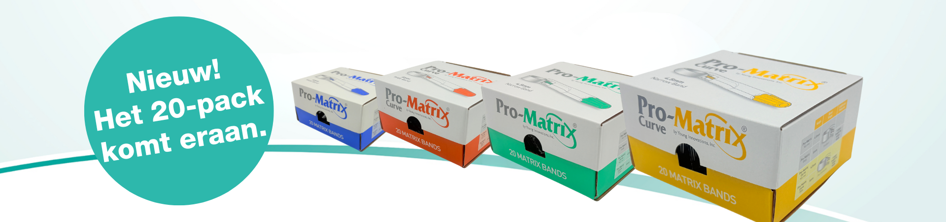 Om goede klinische resultaten te bereiken met amalgaam- en composietrestauraties is het nuttig om een matrixsysteem te gebruiken dat geen omslachtige montage van band en houder vereist. In het ideale geval past het zich ook gemakkelijk aan de tandvorm aan. Dit alles is mogelijk met onze Pro-Matrix en Pro-Matrix Curve matrixoplossing.