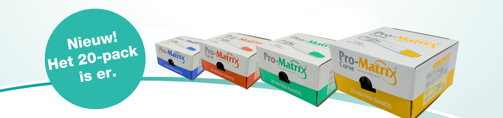 Om goede klinische resultaten te bereiken met amalgaam- en composietrestauraties is het nuttig om een matrixsysteem te gebruiken dat geen omslachtige montage van band en houder vereist. In het ideale geval past het zich ook gemakkelijk aan de tandvorm aan. Dit alles is mogelijk met onze Pro-Matrix en Pro-Matrix Curve matrixoplossing.